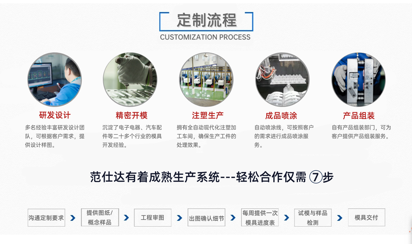 東莞范仕達掌握注塑生產核心技術,從成品生產需求到客人模具制作前技術交流,讓模具交貨期短,壽命長,快速量產,成品質量優!自成立以來一直致力于精密注塑模具、多腔筆模、智能電子、機電產品、汽車連接器、醫療管狀模具及其非標配件加工技術!